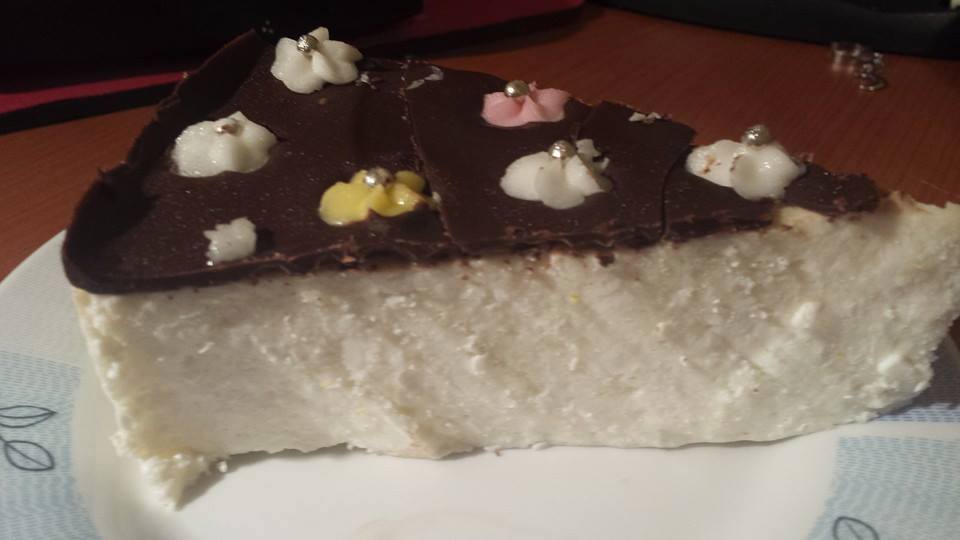 1,5 csomag háztartási zselatint pici vízben feloldunk, felforraljuk, majd kissé kihűtjük és a túróhoz adjuk. Egy csatos tortaformába öntjük és hűtőbe tesszük szilárdulni. Amikor kemény már, akkor a tetejét csokoládémázzal bevonjuk és visszatesszük a hűtőbe! 1-2 óra múlva tálalhatjuk!