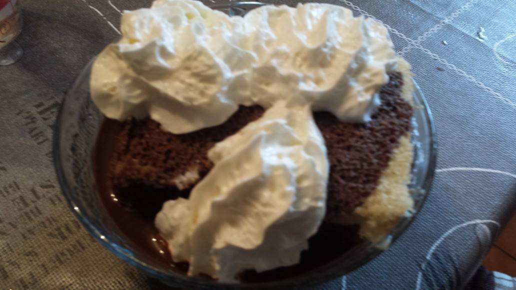 Két piskótalapot sütünk! Vaniliás pudingot főzünk, amikor kész, egy kis vajjal vagy margarinnal kikeverjük. Diót egy serpenyőben lepirítunk és durvára törünk. Az egyik piskótát alaposan megszórjuk dióval, majd rátöltjük a pudingot és ismét megszórjuk dióval. Rátesszük a másik réteg piskótát. Hagyjuk kihűlni. Csokoládébevonót (én a zacskós fajtát használom) felolvasztunk kevés tejben, majd hozzákeverünk egy kis doboz tejszínt és rumaromát is. Összeforraljuk és hagyjuk kihűlni. Tálaláskor vágunk egy kockányit a süteményből, leöntjük a csokoládészósszal és tejszínhabot teszünk a tetejére.